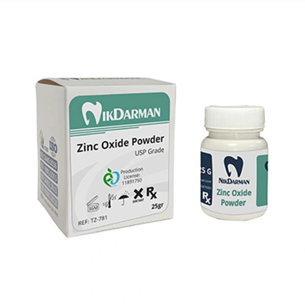پودر زینک اکساید نیک درمان Zinc Oxide Powder از بهترین مواد دندانپزشکی موجود در بازار است که توسط شرکت ایرانی نیک درمان NikDarman تولید شده است. پودر زینک اکساید Zinc Oxide Powder نیک درمان به عنوان ماده ای جهت پر کردن موقت، پوشش شکاف ها، سمان موقت و دائمی و هم چنین پرکننده های کانال ریشه مورد استفاده قرار می گیرد. پودر زینک اکساید نیک درمان با کیفیت عالی و خلوص بالای خود انتخابی عالی برای دندانپزشکان حرفه ای است.