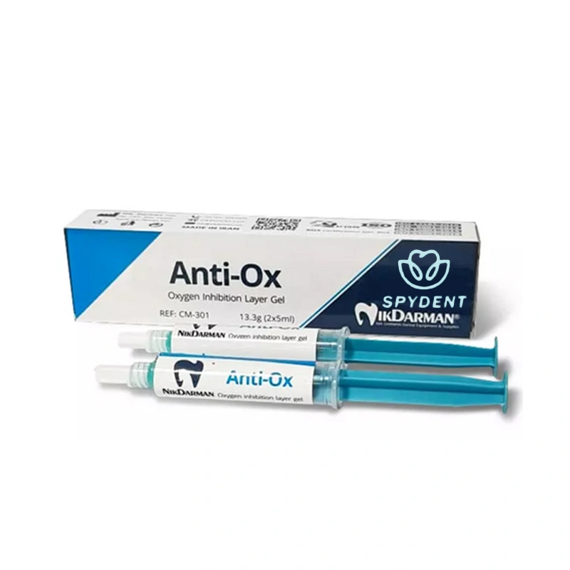 آنتی اکس یک ژل شفاف،چسبناک و مبتنی بر گلیسیرین و محلول در آب است که برای جلوگیری از تشکیل یک لایه بازدارنده اکسیژن بر روی سطح کامپوزیت و مواد رزینی و سمان های لوتینگ در هنگام پلیمریزه شدن طراحی شده است.